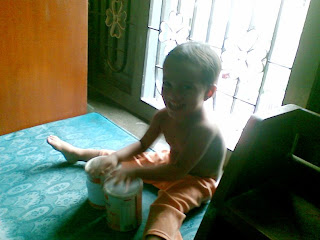 Shafeen playing with dhol like a drum in the boishakhi mela. He was 4 years and